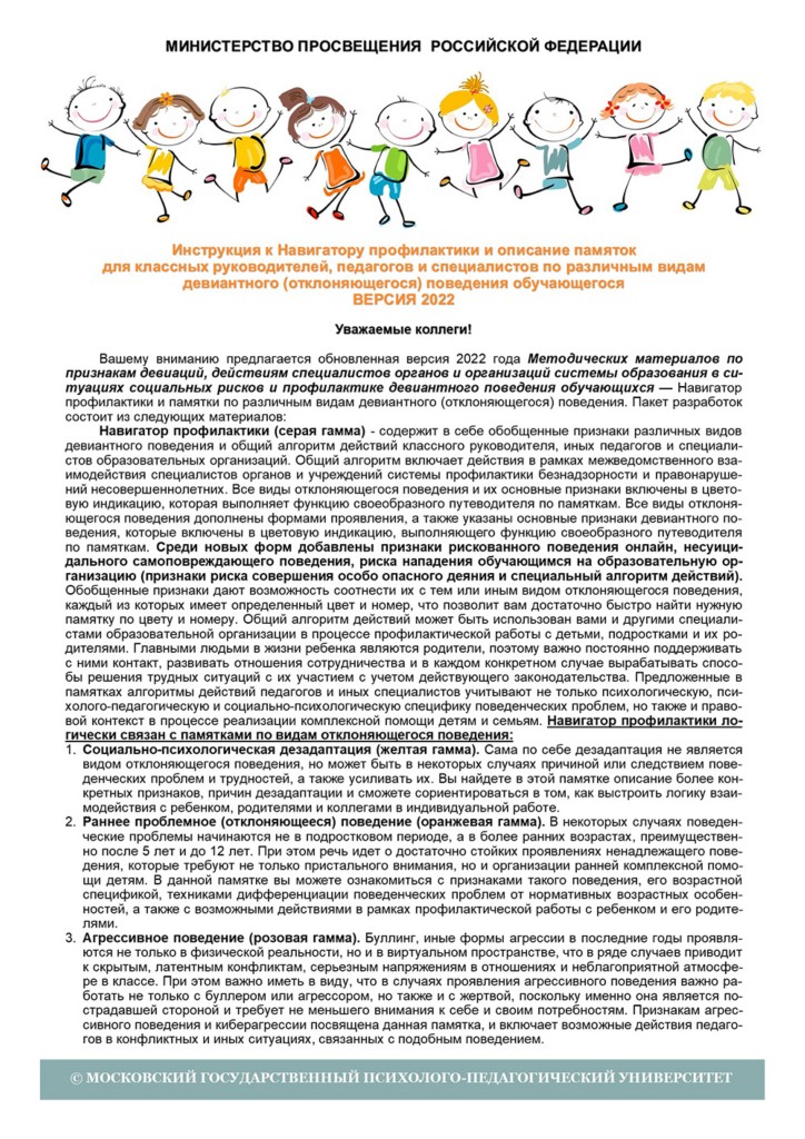 Инструкция к Навигатору профилактики и памяткам по различным видам девиантного поведения.