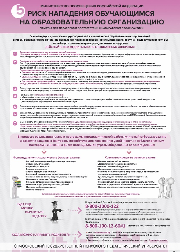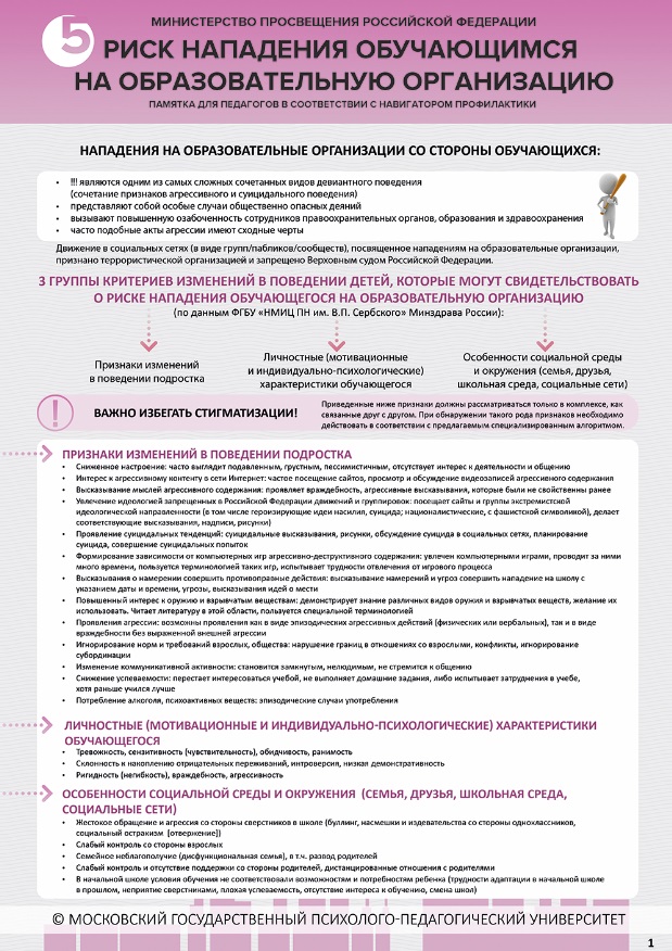 5. Памятка "Риск нападения обучающимся на образовательную организацию".