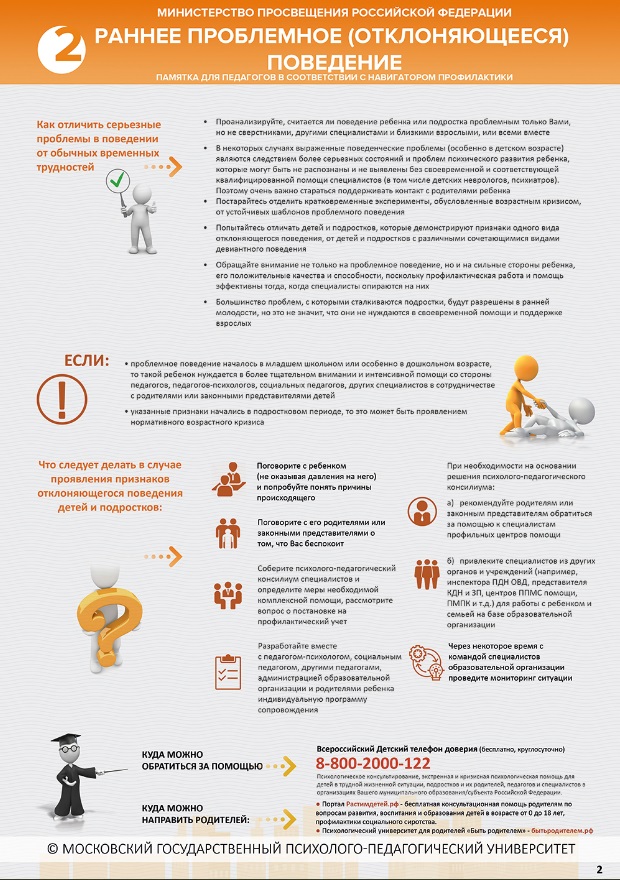 2. Памятка по раннему проблемному (отклоняющемуся) поведению.