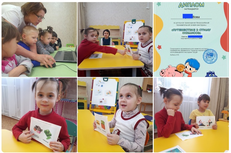 Дети дошкольной группы продолжают пополнять и закреплять уже полученные знания о финансах через участие во Всероссийской онлайн викторине "Путешествие в страну финансов".