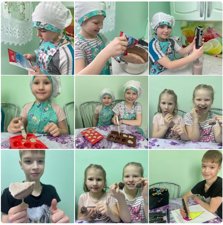 Ребята отгадывали загадки и рассказывали о том, какое у них самое любимое мороженое. Кто-то любит шоколадное, а кто-то клубничное. Дружно взялись за дело и своими руками приготовили настоящее мороженое. Таким вкусным и сладким получился любимый десерт!