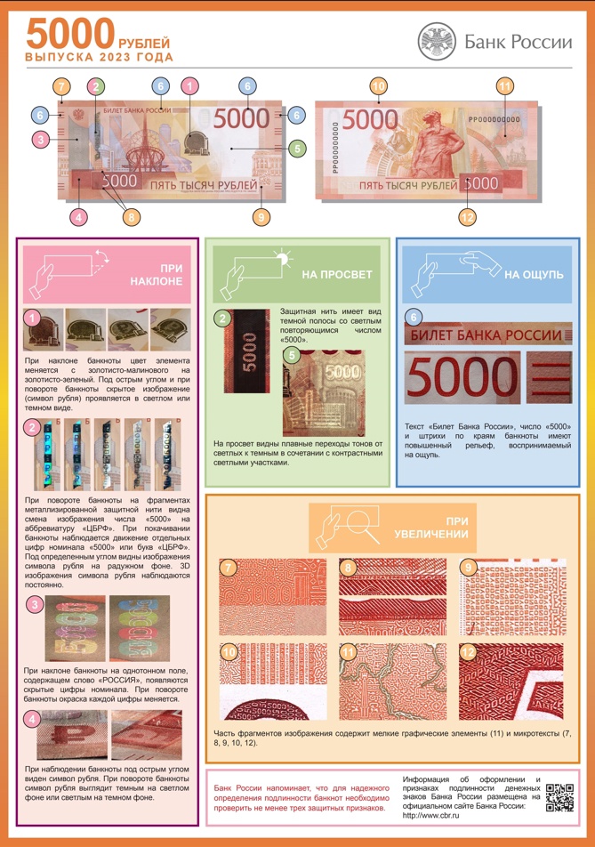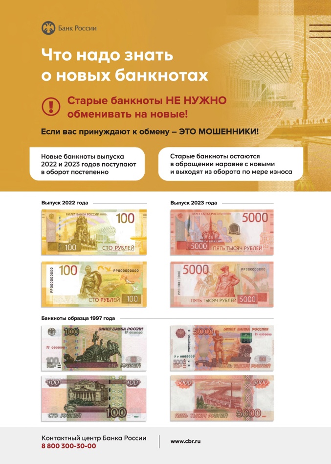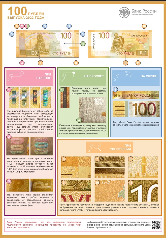 Подробнее о модернизированных банкнотах номиналом 100 рублей и 5000 рублей читайте в карточках