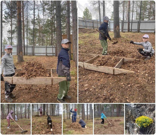 В воскресенье такой солнечный день, воспитанники из #СРЦНБратскогорайона неплохо потрудились! Убирали листья и сорняки с территории учреждения в зоне леса.