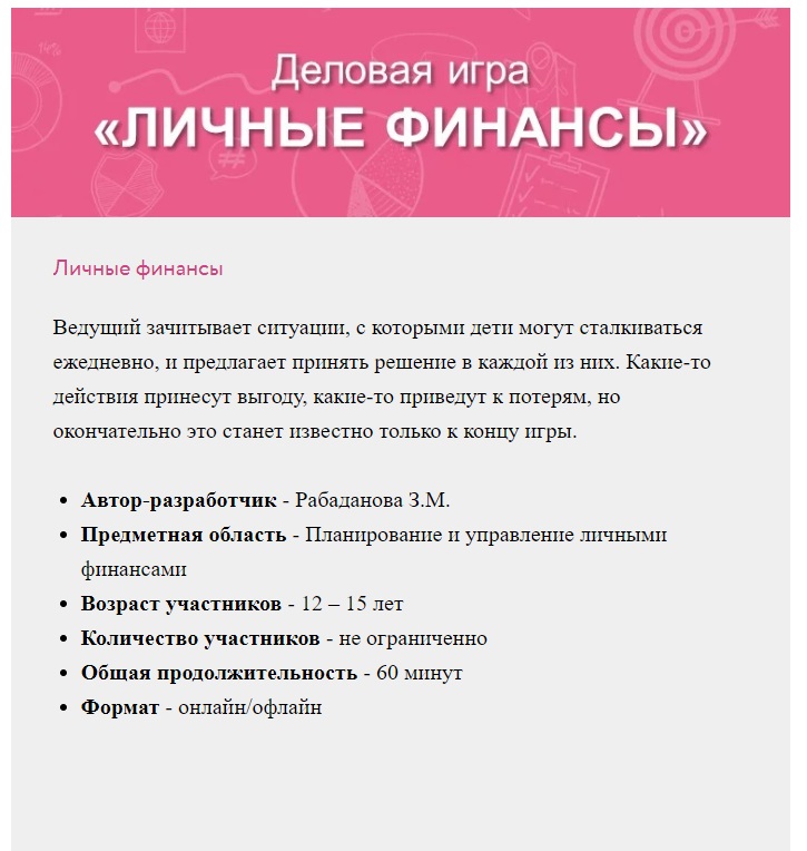 Уже не первый год наши воспитанники и педагоги принимают активное участие в онлайн-уроках по финансовой грамотности. На сайте https://doligra.ru/ с целью закрепления теоретического материала и формирования навыков разумного финансового поведения ребят, разработаны ещё и игры по финансовой грамотности.