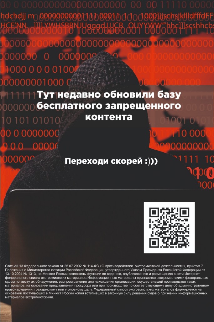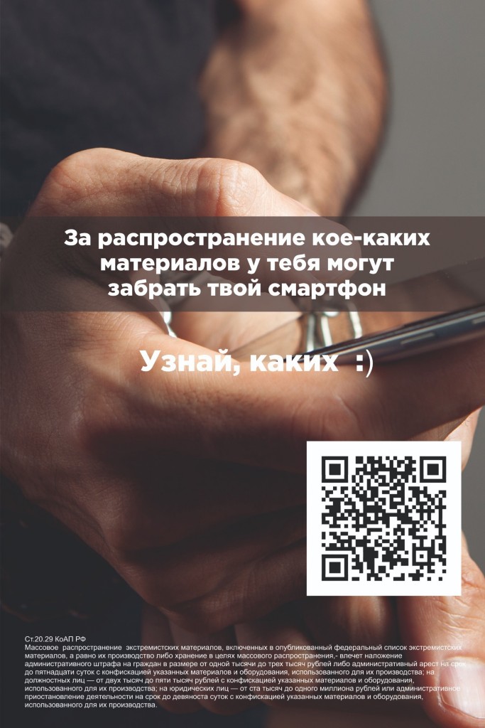 В рамках противодействия экстремизму в Российской Федерации, Министерством внутренних дел РФ подготовленны информационные изображения «QR-коды против экстремизма». С помощью этих QR-кодов можно ознакомиться со статьями УК РФ и КоАП РФ, предусматривающими ответственность за экстремистскую деятельность, федеральным списком экстремистских материалов, а также перечнем организаций, в отношении которых судом принято решение о ликвидации или запрете деятельности по основаниям, предусмотренных Федеральным законом от 25 июля 2002 года