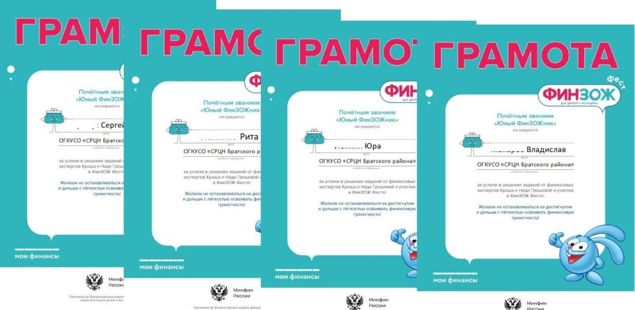 Наши дошколята и младшие школьники прослушали новые выпуски подкаста «Крош и Грош», и ответили на вопросы теста. Ответив на все увлекательные вопросы, получили почетные грамоты юных ФинЗОЖников.