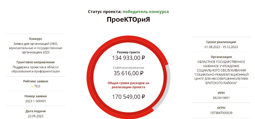 Наше учреждение стало одним из победителей конкурса благотворительных и социальных проектов АО «ОМК – Партнерство» с проектом «ПроеКТОриЯ».